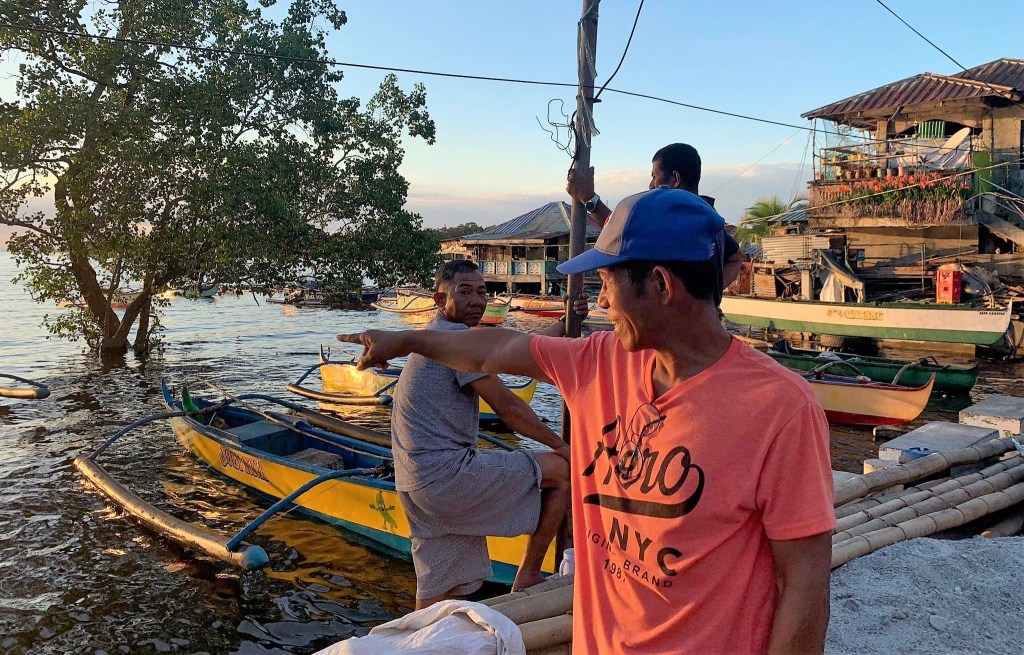 📸 NMFA president Leonardo Cuaresma points to fishing boats that have lain idle since the destruction of their group’s payao device [Top photo]The cargo ship HC Glory at port in Masinloc, Zambales