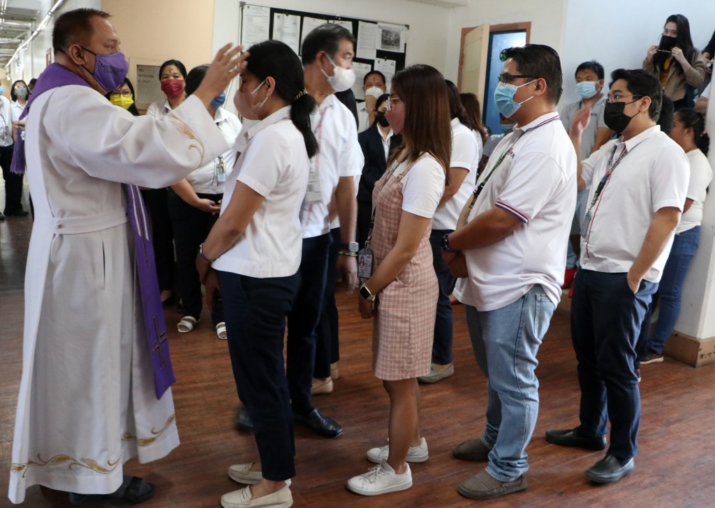 Rev. Emmanuel Sian Montes, chaplain of San Roque Chapel daub ash on the forehead of SBMA employees in observance of Ash Wednesday in Subic Bay Freeport zone. Also known as the Day of Ashes in Christian faith, it ushers the start of the Lenten season.