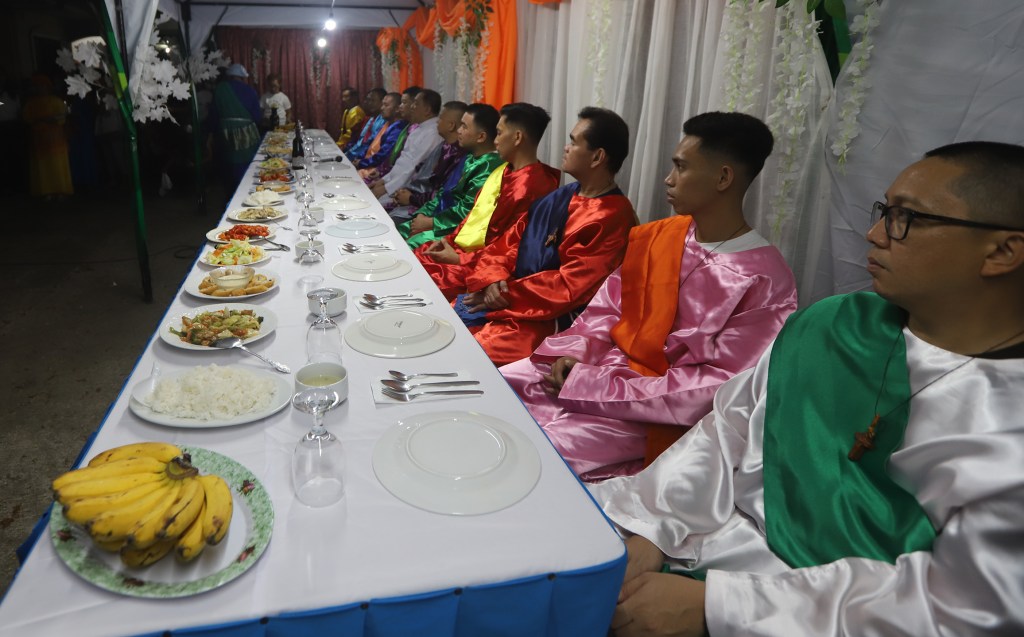Washing of feet and the Lord’s last supper is reenacted by priests and church members on Maundy Thursday evening mass at the San Roque Chapel in Subic Bay Freeport. Maundy Thursday marks the Last Supper, where Jesus Christ ate with his disciples and washes their feet as sign of humility and equality among mankind. (Ang Pahayagan photos / JUN DUMAGUING)