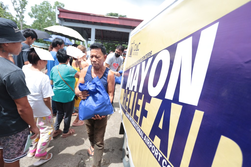 CLARK FREEPORT ZONE—A team composed of personnel from the Clark International Airport Corp. distributed relief packages to 400 heads of families in two evacuation centers in the province of Albay on July 14 as assistance to families displaced by Mayon volcano’s unrest.