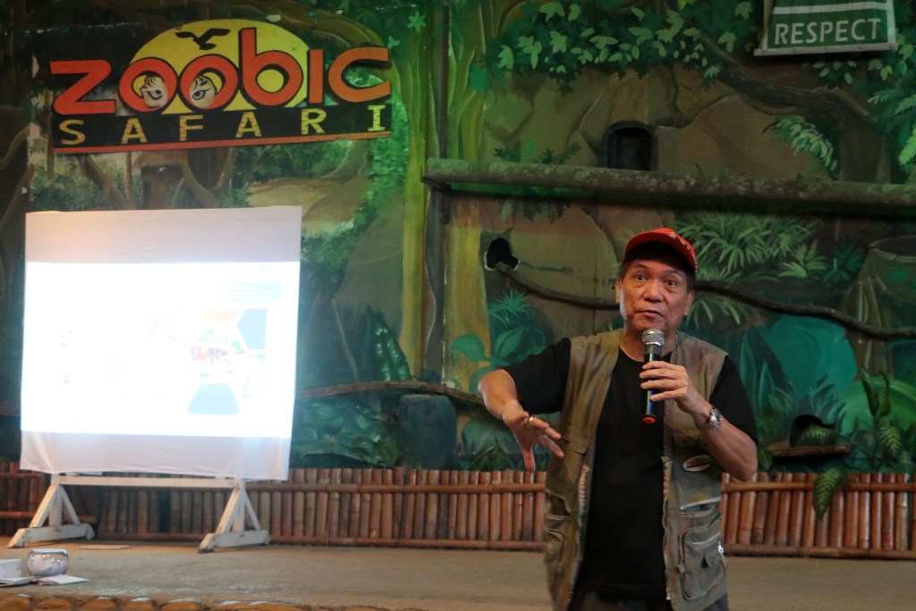 Yupangco gestures as he welcomes travel and tour operators at Zoobic Safari in Subic Bay Freeport .