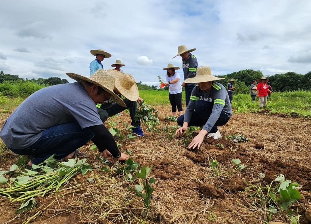 With their salakots and long-sleeved shirts on, the employee volunteers visited the beneficiary farmers in their fields, planting and harvesting corn, sweet potatoes, and sweet potato stems with the locals.