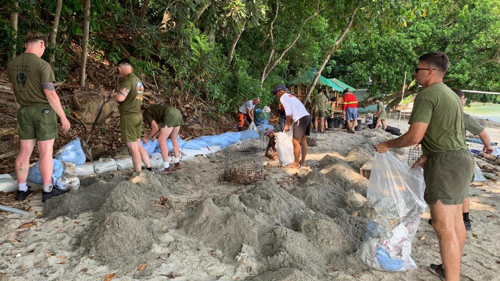 United States Marines Corp personnel joins Ocean Adventure Marine Park employees in a beach clean-up drive and turtle nesting area restoration at the Camayan Point, Tuesday, June 18 in Subic Bay Freeport zone. (Ocean Adventure Park photos)