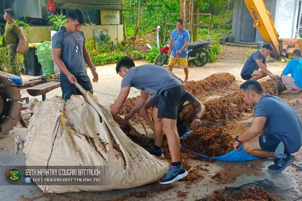 Kaugnay nito ay naki-isa din ang kasundaluhan ng 69th Infantry “Cougar” Battalion sa pagawa ng mga improvised oil spill boom gamit ang mga materyales tulad ng coconut husk, empty plastic bottles at lambat.