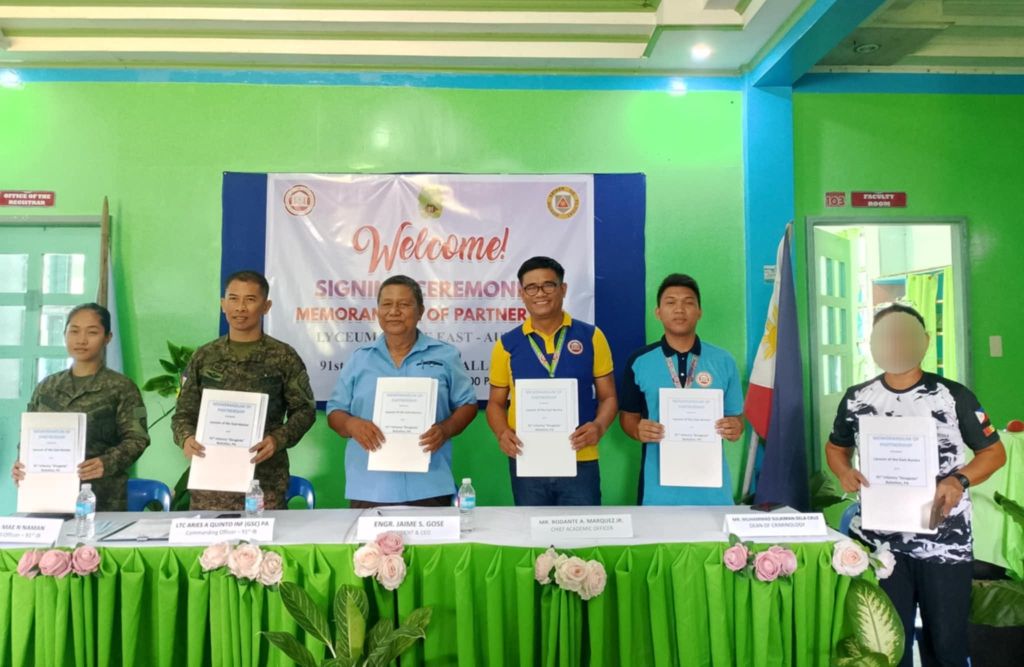 📸 The 91st Infantry Battalion and the Lyceum of the East – Aurora extend their Memorandum of Partnership on the provision of scholarships to former rebels and their dependents and siblings. Programs covered include bachelor degrees, technical-vocational training accredited by the Technical Education and Skills Development Authority, and junior and senior high school. (Photo courtesy of 91st Infantry Battalion)