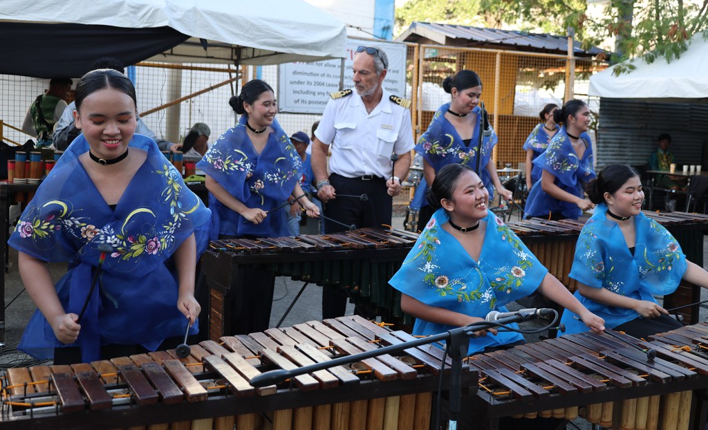 📸 MV Silver Dawn ship captain Giovanni Schiaffino joins cultural performers in using native musical instrument during the luxury cruise ship’s maiden port call in Subic Bay Freeport. (Ang Pahayagan photo/ JUN DUMAGUING)