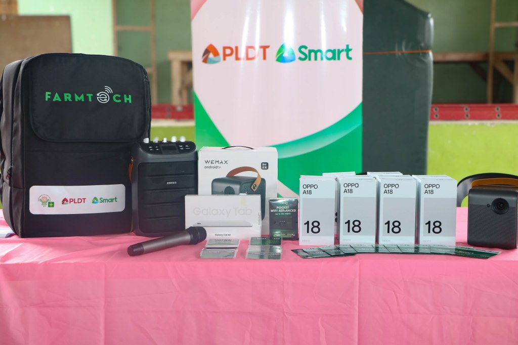 The FarmTech package is a tech-driven training kit designed to assist farming communities in remote areas in implementing digital literacy programs for their farmer-members. The package contains a tablet, 10 smartphones, a SmartBro pocket WiFi with Smart Prepaid load cards, an outdoor projector, a portable sound system, and learning resources.