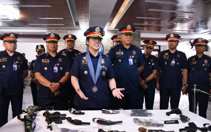 📸 Ipinakita ni Police Regional Office (PRO) 3 Director Brig. Gen. Jean Fajardo ang mga nakumpiskang baril mula sa 25 na lumabag sa unang araw ng election gun ban sa Central Luzon. Ang naturang gun ban para sa 2025 midterm polls ay tatagal hanggang Hunyo 11. (PRO 3)