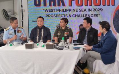 📸 WPS FORUM. Philippine Coast Guard (PCG) Spokesperson for the West Philippine Sea (WPS) Commodore Jay Tarriela (from left to right), former Senior Associate Justice Antonio Carpio, Armed Forces of the Philippines (AFP) Spokesperson Col. Francel Margareth Padilla, National Security Council (NSC) Assistant Director General Jonathan Malaya, and columnist Richard Heydarian during the UTAK Forum in Quezon City on Wednesday (Jan. 29, 2025). Tarriela said there was an increase in online “trolls” targetting government-run social media pages as the country intensified its transparency efforts in the WPS. (PNA photo by Raymond Carl M. Dela Cruz)