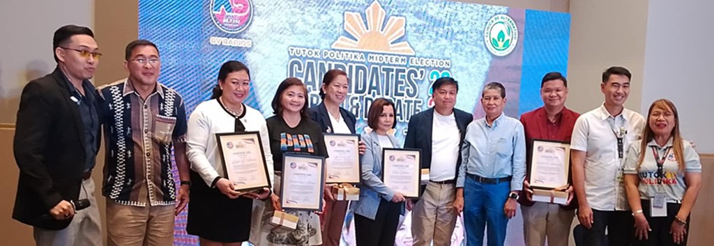 Dakong hapon naman nang magharap ang mga kandidato para sa pagka- alkalde na pinangungunahan ni incumbent mayor Atty. Rolen C. Paulino Jr., Vice-Mayor Aqulino “Jong” Cortez, businessman Dr. Arnold Vegafria, at ABC President Barangay Chairperson Prescilla Echie Ponge. (Ulat at larawan para sa Ang Pahayagan / MITCH SANTOS)