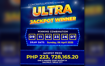MANILA – A lone bettor from Tarlac province became a multimillionaire after winning the PHP223-million Ultra Lotto 6/58 jackpot on Sunday night’s draw.