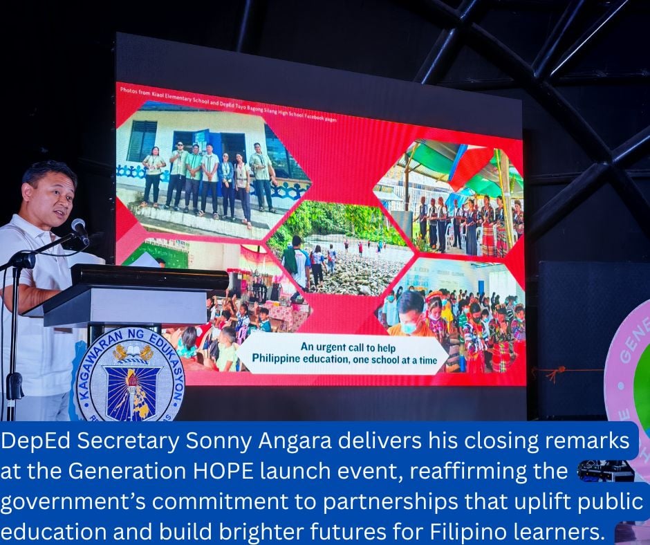 “Generation Hope is a reflection of our commitment to make quality education accessible to all,” said Department of Education Secretary Sonny Angara.