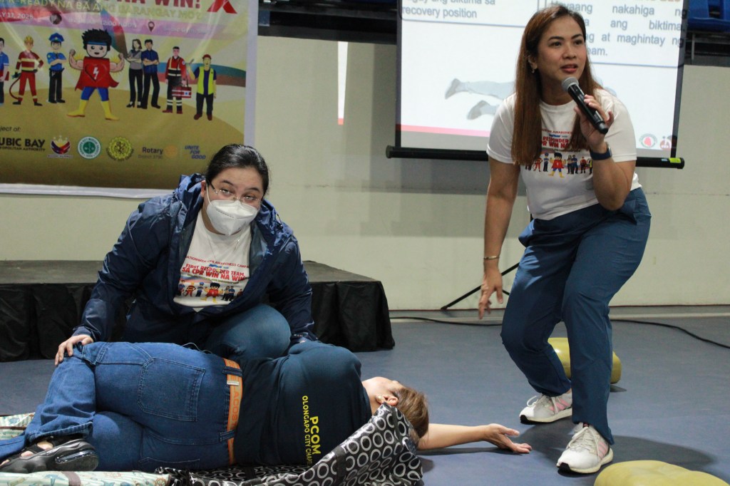 Participants joins the nationwide cardiopulmonary resuscitation (CPR) Awareness Campaign held Thursday, July 17 at the Subic Gymnasium in Subic Bay Freeport zone. The activity aims to train frontliner workers both in the private and public sector, students and the academe, the basic procedures on how to respond to cardiac arrest victims.