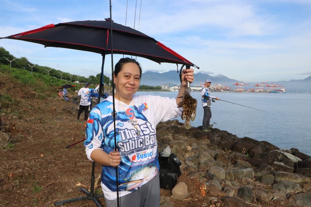 Joan Cabaruguis, a participant from Metro Manila display her Lapu-lapu (common name : Grouper) catch during the 1st Subic Bay Shore Fishing Tournament in Subic Bay Freeport on Saturday, August 09, 2025. (SBMA HO photo)