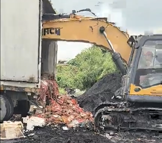 GANAP NGAYON: Nasa larawan habang isinasakatuparan ng Bureau of Customs-Port of Subic ang kondemnasyon at pagtatapon sa mga nasamsam na kargamento na naglalaman ng mga bulok na karne at mga produktong pang-agrikultura ngayong Biyernes, Agosto 15 sa isang sanitary landfill facility sa Porac Pampanga.