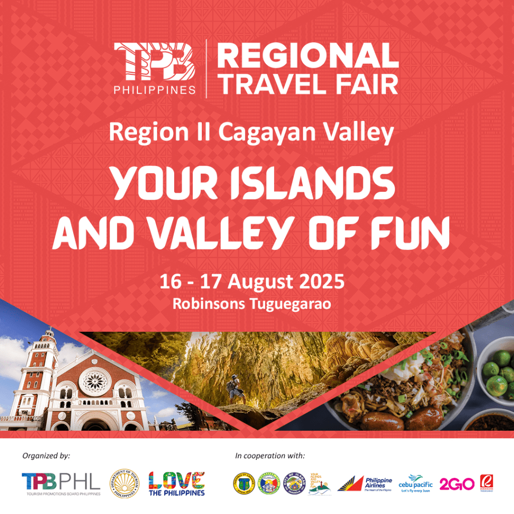 The Tourism Promotions Board (TPB) Philippines, the marketing and promotions arm of the Department of Tourism (DOT), proudly announces the 15th run of the Regional Travel Fair (RTF). The first installment of this biannual fair will be held in Tuguegarao City, the capital of Cagayan province, from August 15 to 17, 2025.