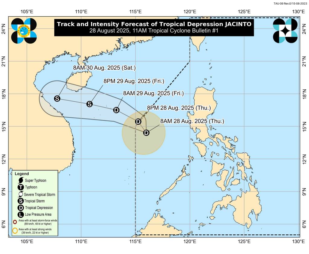 Jacinto is expected to move northwestward and exit the Philippine Area of Responsibility (PAR) tonight, heading toward the West Philippine Sea.