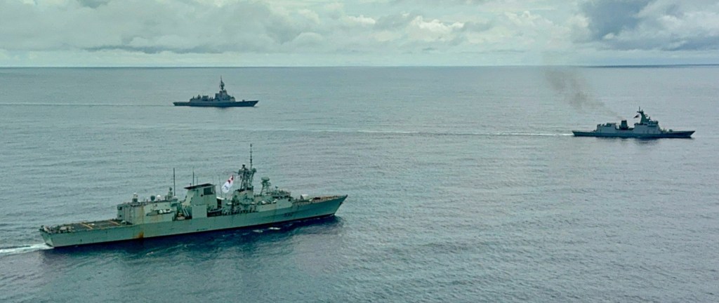📸 The Philippine Navy’s BRP Jose Rizal (FF150), Canada’s HMCS Ville de Quebéc (FFH332) and Australia’s HMAS Brisbane (DDG41), sail in unison during the 10th Multilateral Maritime Cooperative Activity.