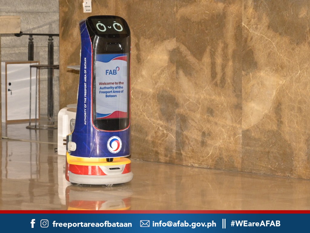 BATAAN–A new kind of assistant is now working inside the Authority of the Freeport Area of Bataan’s (AFAB) Administration Building. It moves around the halls, greets guests, carries informational materials, plays cheerful music and even shares Freeport updates.