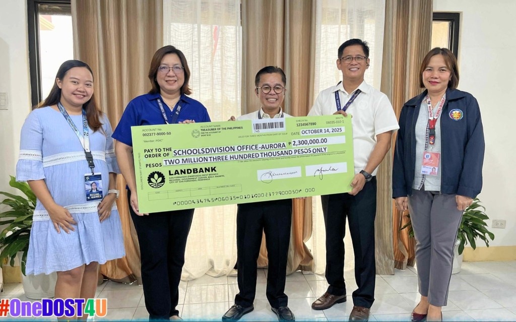 AURORA — The Department of Science and Technology Region III (DOST-III), through the Provincial Science and Technology Office of Aurora (PSTO-Aurora) headed by Provincial S&T Director Maricel M. Sicat, awarded a cheque to the Department of Education – Schools Division of Aurora (SDO Aurora) for the implementation of the project titled “Cultivate to Educate: Central Luzon Schools Leading the Way in Food Security and Community Nourishment through Agricultural Hubs Promoting Smart and Sustainable Agriculture.”