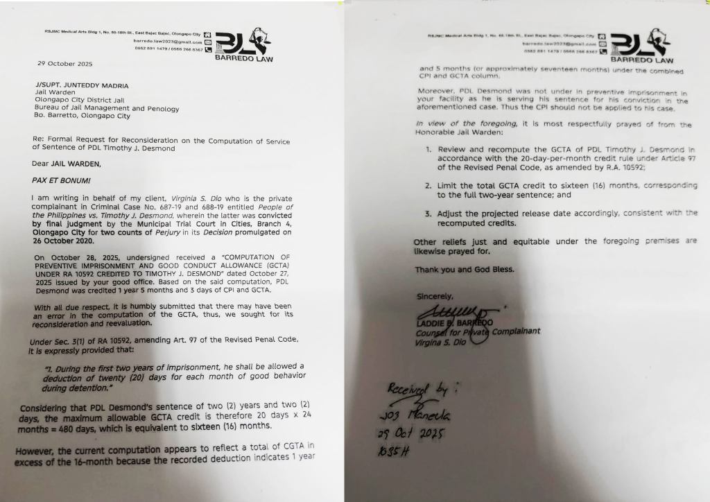 The Barredo Law Office cited that “upon completion of service of sentence, PDL Desmond should be turned over to the Bureau of Immigration (BI) detention facility for summary deportation,” pursuant to Commonwealth Act No. 613 or the Philippine Immigration Act of 1940.