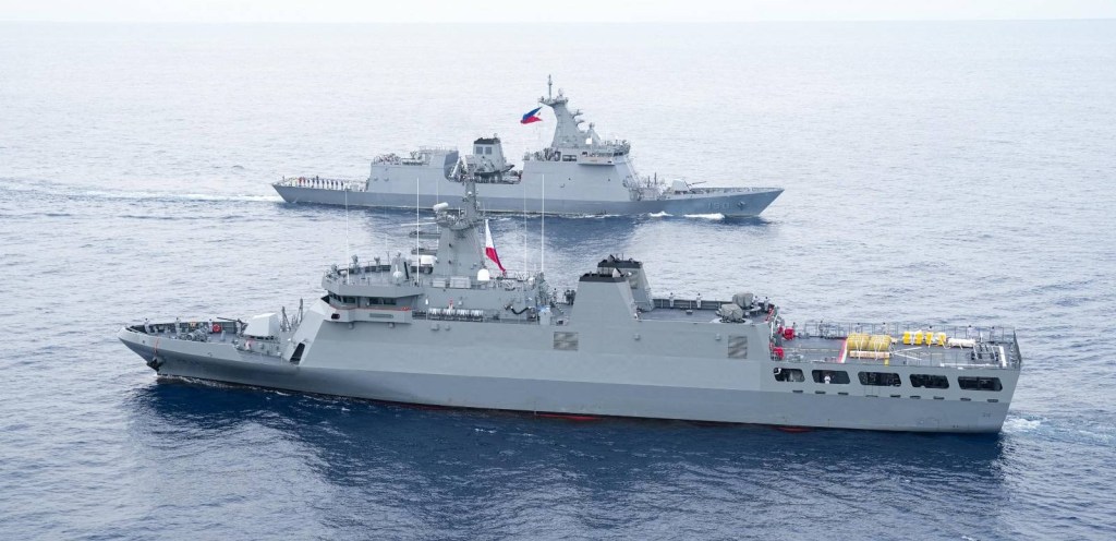 TOP 📸: Philippine Navy’s newest Offshore Patrol Vehicle (OPV), the future BRP Rajah Sulayman (PS20) with the BRP Jose Rizal (FF150) during a meeting procedure on January 17, 2026. (Philippine Navy photos)