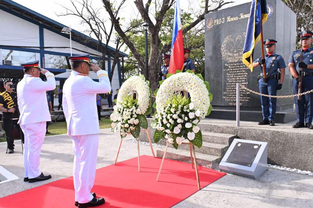 A solemn wreath-laying ceremony was held at exactly 8:00 a.m. at the PRO3 Heroes’ Monument, led by PRO3 Regional Director Police Brigadier General Ponce Rogelio I. Peñones Jr., together with members of the PRO3 Command Group and Regional Staff.