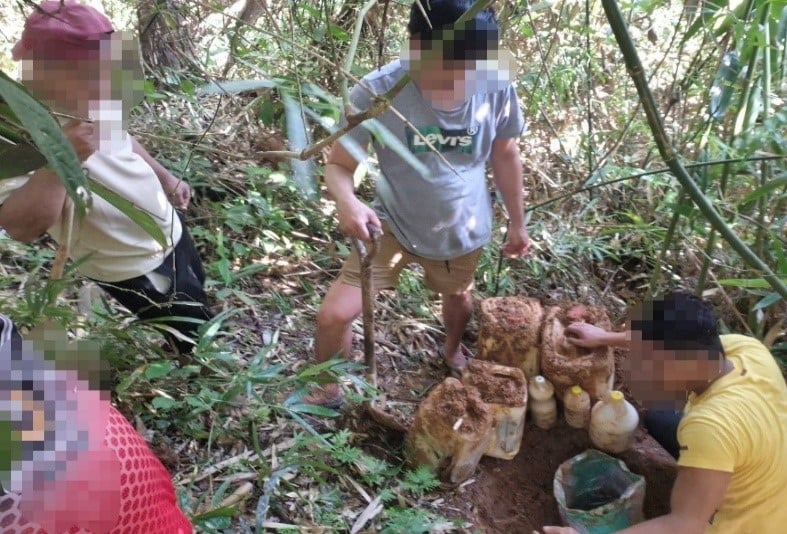 TOP📸: Government troops from the 91st Infantry Battalion and PNP-SAF recover a suspected food cache during a security operation in Sitio Binwangan, Maria Aurora, Aurora, as part of ongoing efforts to disrupt insurgent support systems and sustain peace in Central Luzon. (Jason de Asis)