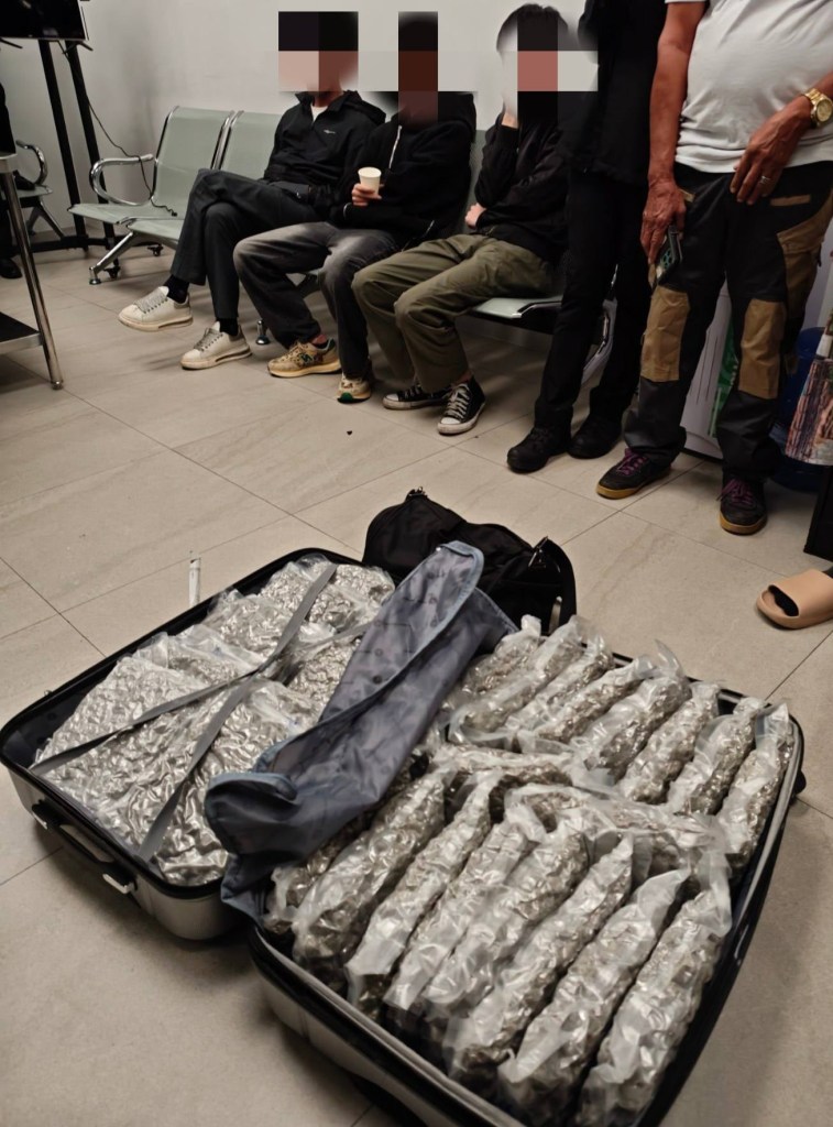Authorities reported that the suspects were carrying three pieces of luggage containing 99 transparent vacuum-sealed plastic packs filled with dried leaves and fruiting tops believed to be a high-grade marijuana variant known as kush. The total weight of the seized illegal drugs was approximately 46,533.3 grams, with an estimated street value of Php69,799,950.