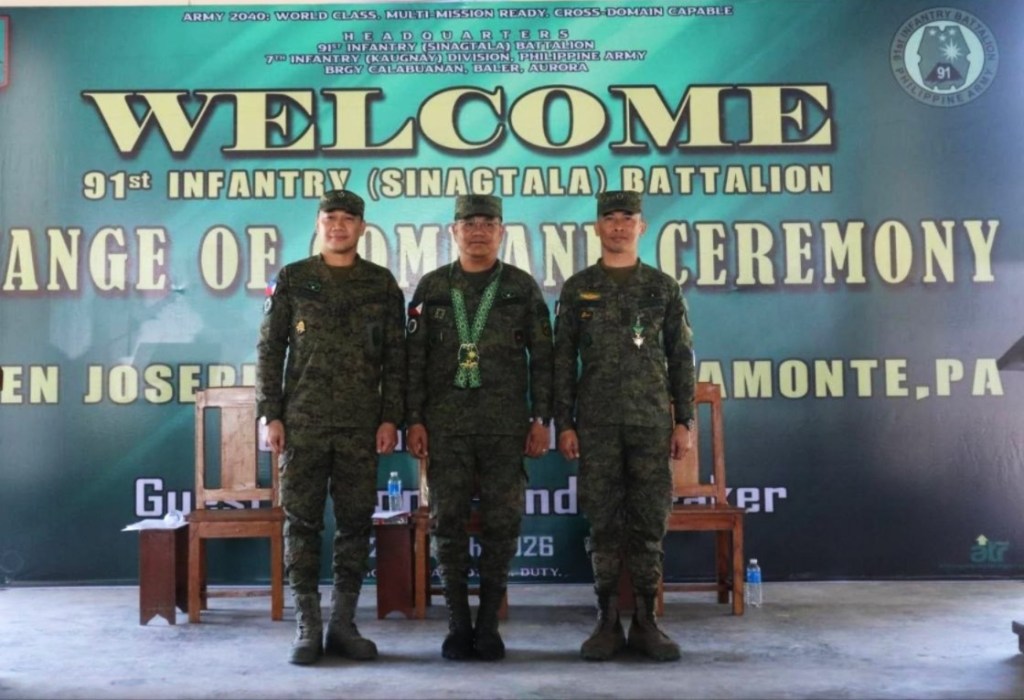 The change of command ceremony marked the formal transition of leadership of the 91st Infantry “Sinagtala” Battalion, a key unit of the Philippine Army tasked with maintaining peace and security in the province of Aurora and nearby areas. (Jason de Asis)