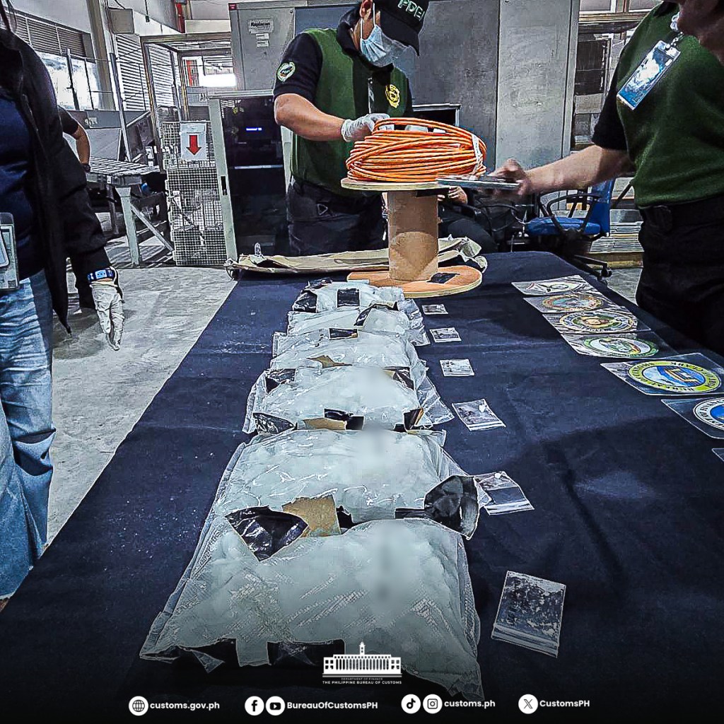 Sa isinagawang K-9 sniff test, nagpositibo ito sa ilegal na droga, dahilan upang isailalim sa full physical inspection ang kargamento. Sa pagbubukas ng shipment, natuklasan ang isang kahoy na cable spool na may nakapulupot na mga kawad. Matapos itong baklasin, natagpuan ang anim (6) na transparent plastic pouches na naglalaman ng puting kristalinong substansya na itinago sa loob ng estruktura.