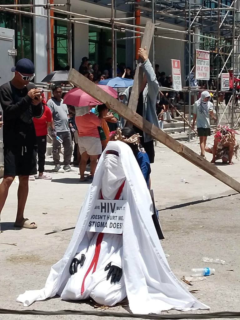 Hindi pa tukoy ang pagkakakilanlan at layunin ng naturang indibidwal, ngunit pinaniniwalaang bahagi ito ng isang makabagong paraan ng panata na naglalayong magbigay kamalayan laban sa stigma at diskriminasyon sa mga taong may HIV. (Ulat para sa Ang Pahayagan / Jun Dumaguing)