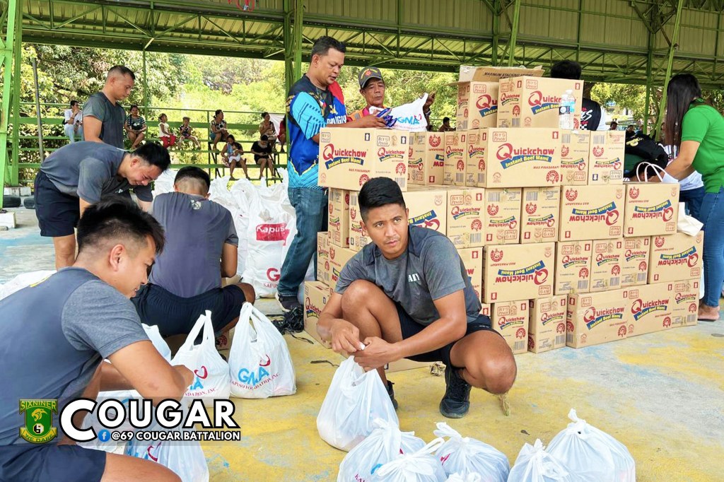 Sa pamumuno ni Lt. Col. Mark Anthony B. Ruelos, commanding officer ng 69IB, at ni 1st Lt. Alex B. Paz ng Alpha Company, nagbigay ang yunit ng seguridad at transportasyon upang matiyak ang ligtas, maayos, at maagap na pamamahagi ng ayuda.