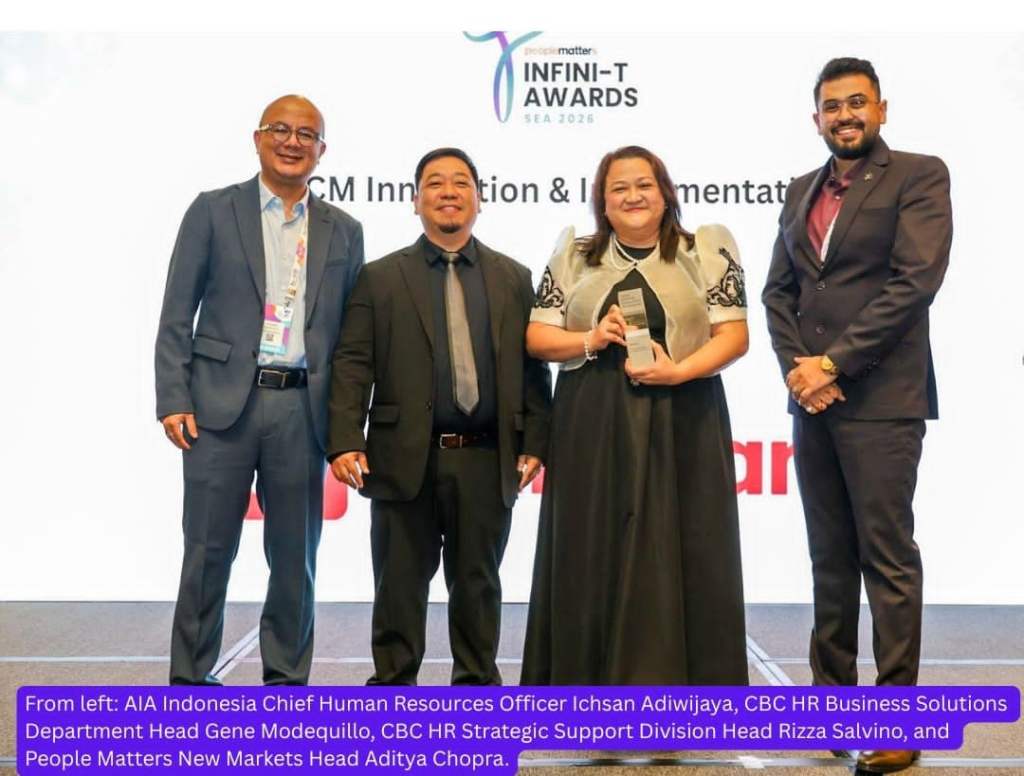 Chinabank was recognized among the best organizations, teams, and individuals in Southeast Asia that redefine the future of work through technology and purposeful transformation. The bank earned the Silver Award for Human Capital Management (HCM) Innovation and Implementation under the Visionary Organizations category at the recent People Matters Infini T Awards SEA 2026 in Singapore. The award is in recognition of the bank’s successful digital transformation of its HR ecosystem through SyncHROne, developed in partnership with Darwinbox and launched in 2025.